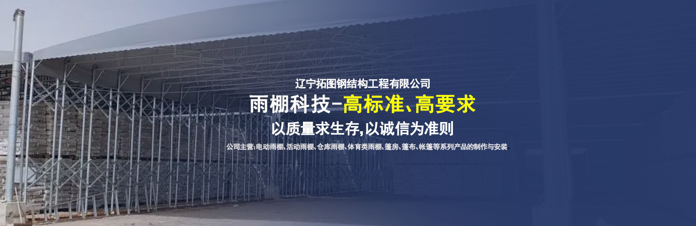 遼寧拓圖鋼結(jié)構(gòu)工程有限公司是一家專業(yè)從事推拉篷設(shè)計(jì)、制作、安裝、使用、維修的綜合性公司。公司主營(yíng):電動(dòng)雨棚、活動(dòng)雨棚、倉(cāng)庫(kù)雨棚、體育類雨棚、篷房、篷布、帳篷等系列產(chǎn)品的制作與安裝。 遼寧拓圖鋼結(jié)構(gòu)工程有限公司堅(jiān)持以市場(chǎng)為導(dǎo)向,以科技創(chuàng)新為動(dòng)力,以質(zhì)量求生存,以誠(chéng)信為準(zhǔn)則,倡導(dǎo)求實(shí)、進(jìn)取、創(chuàng)新的企業(yè)精神。“科學(xué)的管理、嚴(yán)謹(jǐn)?shù)脑O(shè)計(jì)、 的制作安裝、嚴(yán)格的質(zhì)量檢測(cè)、良好的后期服務(wù)成就企業(yè)的信譽(yù),為您提供優(yōu)質(zhì)服務(wù)。 遼寧拓圖鋼結(jié)構(gòu)工程有限公司傾力于開發(fā)應(yīng)用三維空間結(jié)構(gòu)與新材料的結(jié)合,將廣告藝術(shù)視覺表現(xiàn)形式與張力膜材科學(xué)的結(jié)合,推出多彩推拉蓬,依靠先進(jìn)的科學(xué)技術(shù),將推拉蓬建筑表現(xiàn)形式無(wú)限延伸,立志走在建筑科學(xué)的前沿,引導(dǎo)建筑時(shí)尚潮流,我們的目標(biāo)是使推拉蓬建筑在中國(guó)發(fā)展壯大。 遼寧拓圖鋼結(jié)構(gòu)工程有限公司憑著極強(qiáng)的事業(yè)熱情和豐富的專業(yè)經(jīng)驗(yàn)以“勤勉進(jìn)取、銳意創(chuàng)新、至誠(chéng)至信”的精神使公司得到迅速健康發(fā)展,業(yè)務(wù)范圍遍及全國(guó)。科學(xué)的管理、嚴(yán)謹(jǐn)?shù)脑O(shè)計(jì)、高標(biāo)準(zhǔn)的制作安裝流程,嚴(yán)格把控產(chǎn)品質(zhì)量,熱誠(chéng)的售后服務(wù)是企業(yè)競(jìng)爭(zhēng)力的源泉。 遼寧拓圖鋼結(jié)構(gòu)工程有限公司人愿以最誠(chéng)摯的態(tài)度,歡迎廣大客戶的蒞臨與溝通!愿為市場(chǎng)提供優(yōu)...